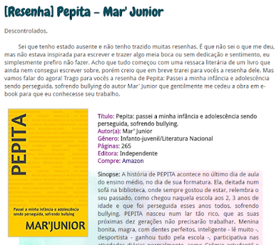 Leitura Descontrolada faz resenha de "PEPITA - passei a minha infância e adolescência sendo perseguida, sofrendo bullying." de Mar'Junior
